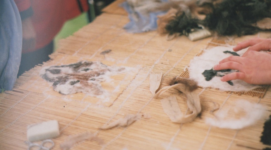 Over 3 days a fantastical felt coat of changing seasons will be created from local sheep fleece (and a bit of local alpaca fleece too). Come and join Barbara Keal, Owena Lewis and others in any stage of the process from washing fleece through to making a felt leaf or animal motif to be added to the coat. Then on Sunday come and have this wild hooded garment lowered on to you.